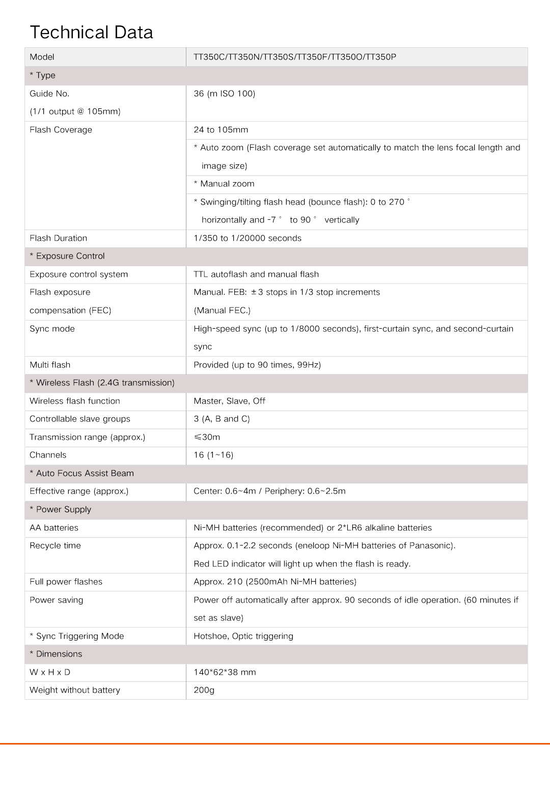 Mini Camera Flash TT350 C/N/S/F/O/P