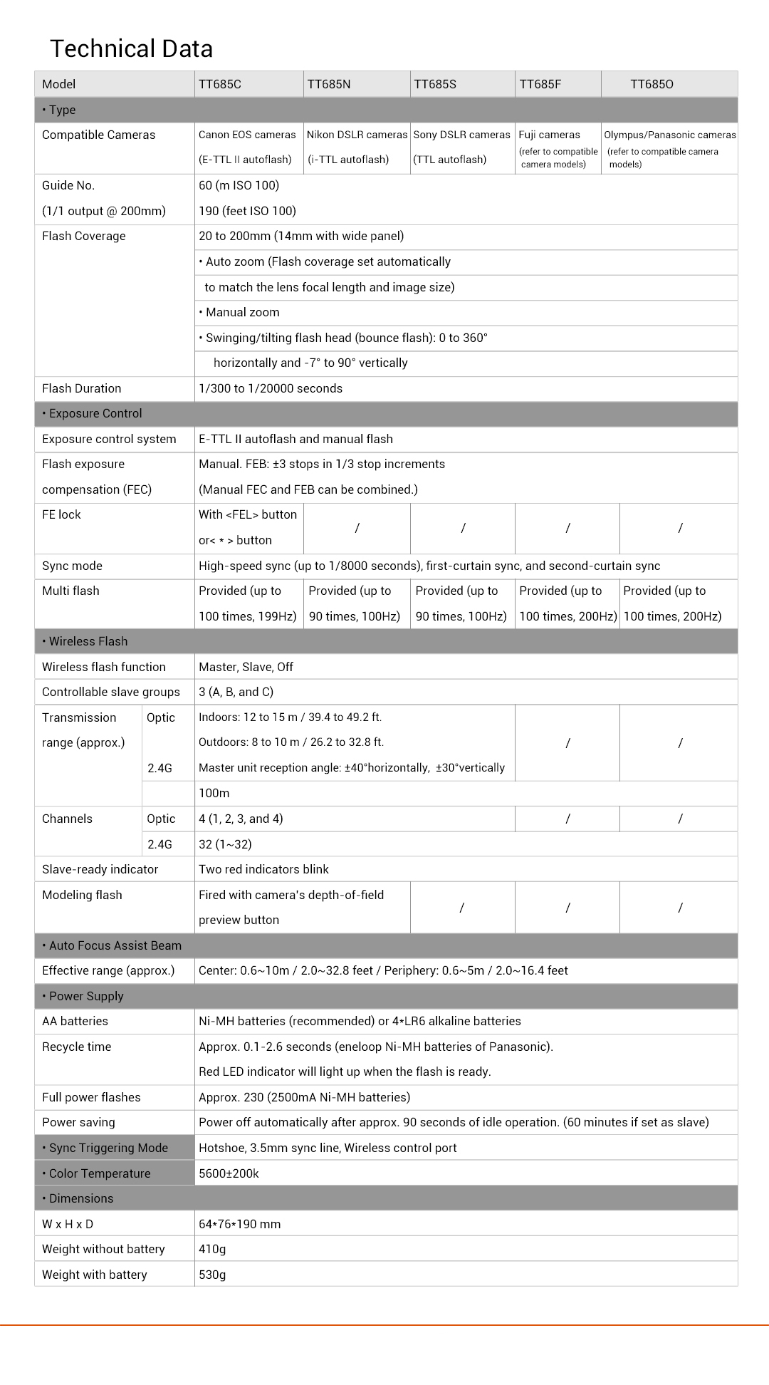 Thinklite TTL Camera Flash TT685 C/N/S/F/O