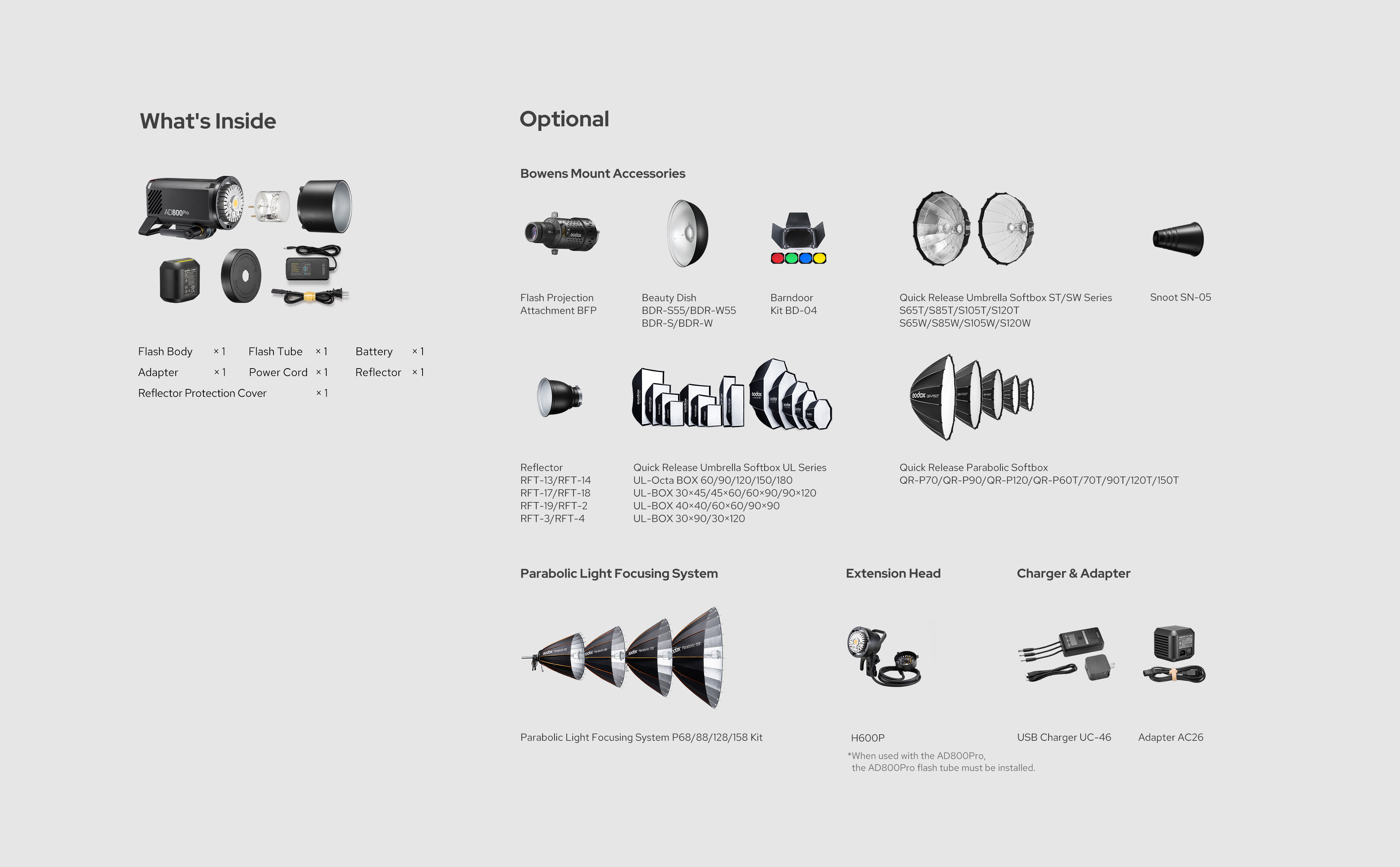 | Net Weight (with battery, flash tube and reflector) | ≈3.7kg / 8.16lb |