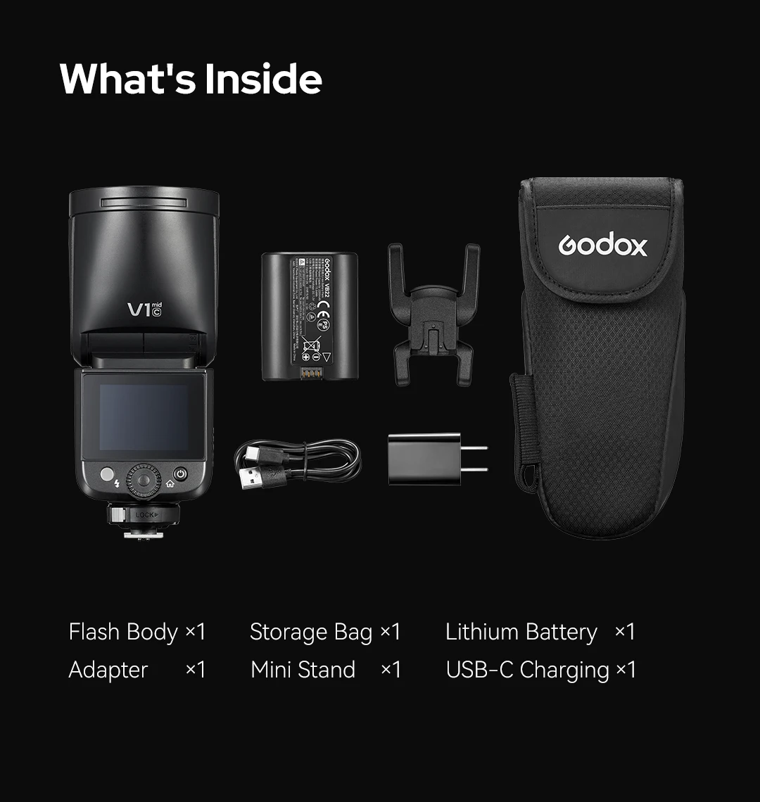 Introducing V1 mid, the newest addition to Godox’s TTL Li-ion Round Head Camera Flash lineup. Designed for photographers who demand professional light quality in a more compact form, V1 mid delivers a refined balance of power, portability, and precision. Powered by Godox Optics, V1 mid achieves brighter output, more even illumination, and smoother light transitions within a compact body—bringing natural, reliable lighting performance to fast-paced professional shoots.
