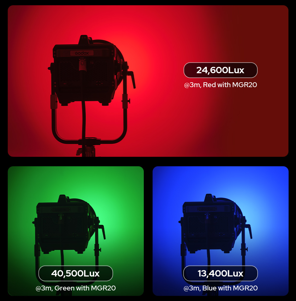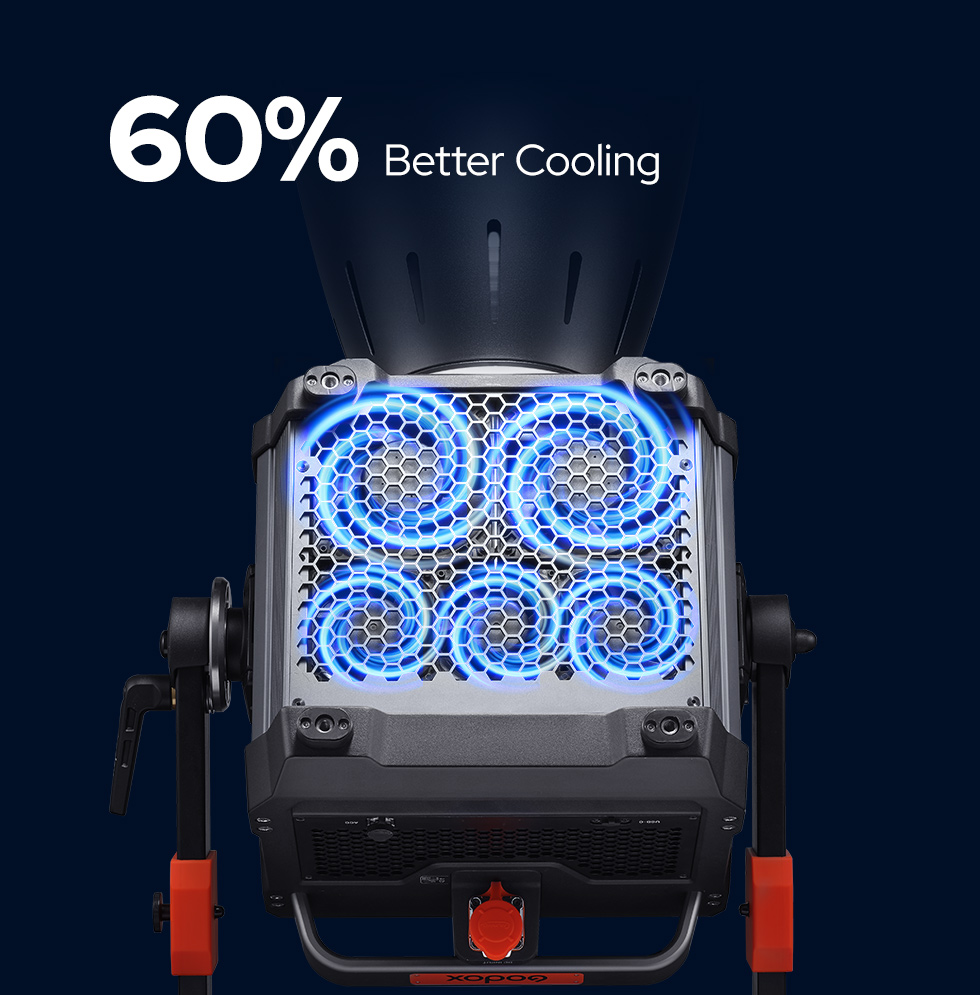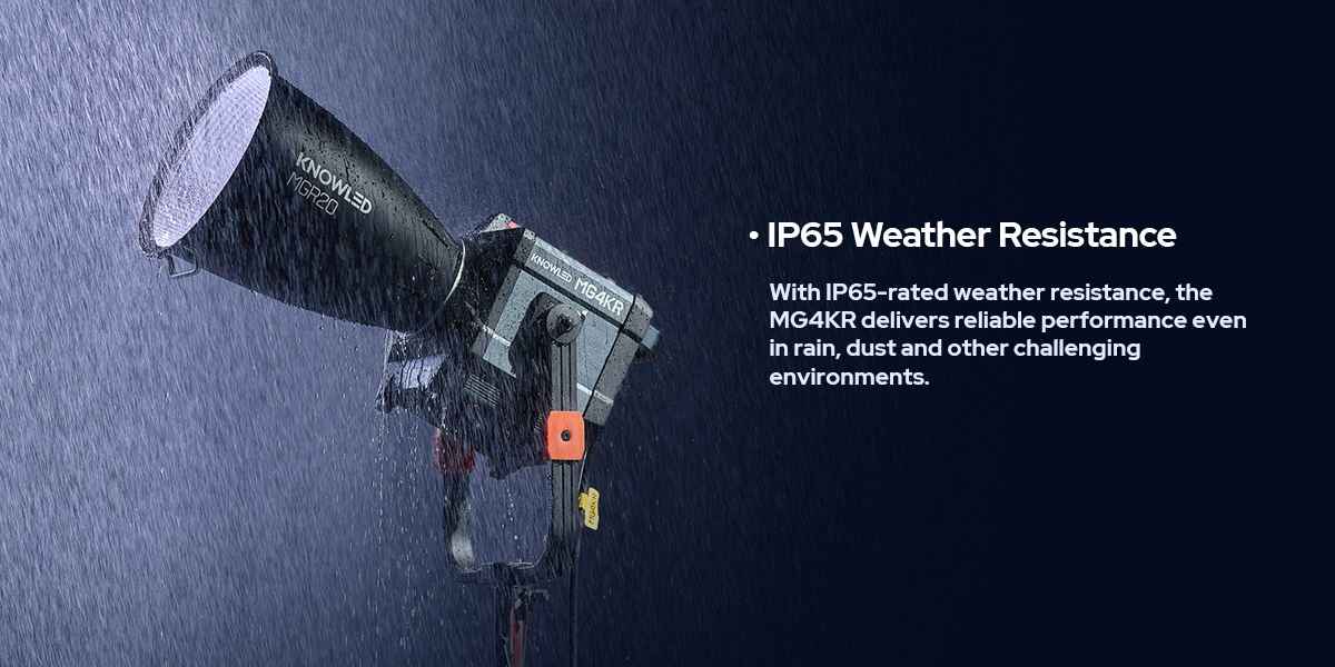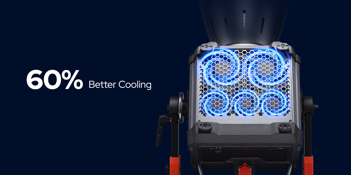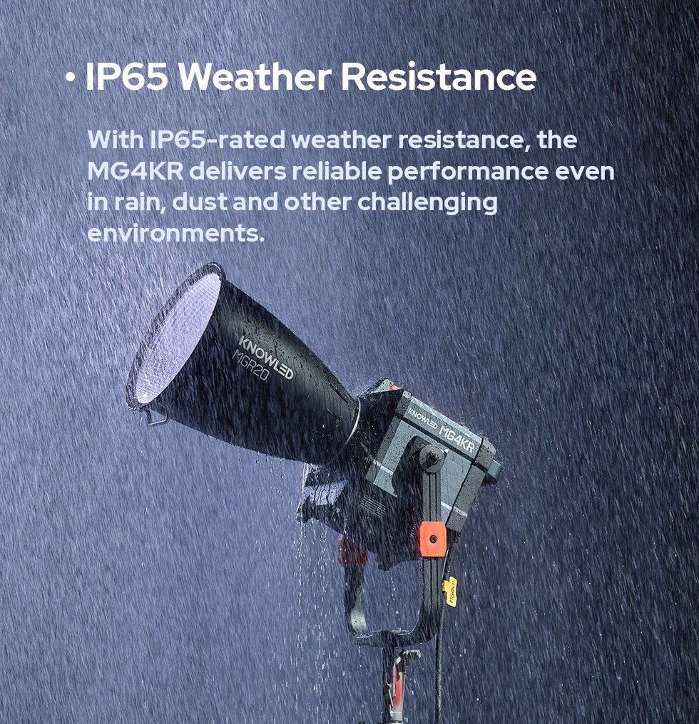 The MG4KR’s advanced heat dissipation system keeps performance consistent and safe, even under full output for extended periods.We improved cooling efficiency by 60% resulting in more light, less heat, and longer lifespan on set.