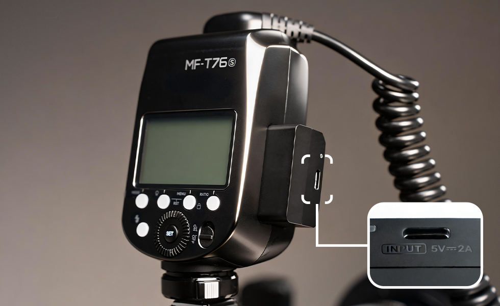 Powered by a high-performance lithium battery, the MF-T76 delivers up to 550 full-power flashes per charge with a fast 1.2-second recycle time. USB-C charging ensures convenient, reliable power for extended shooting sessions.