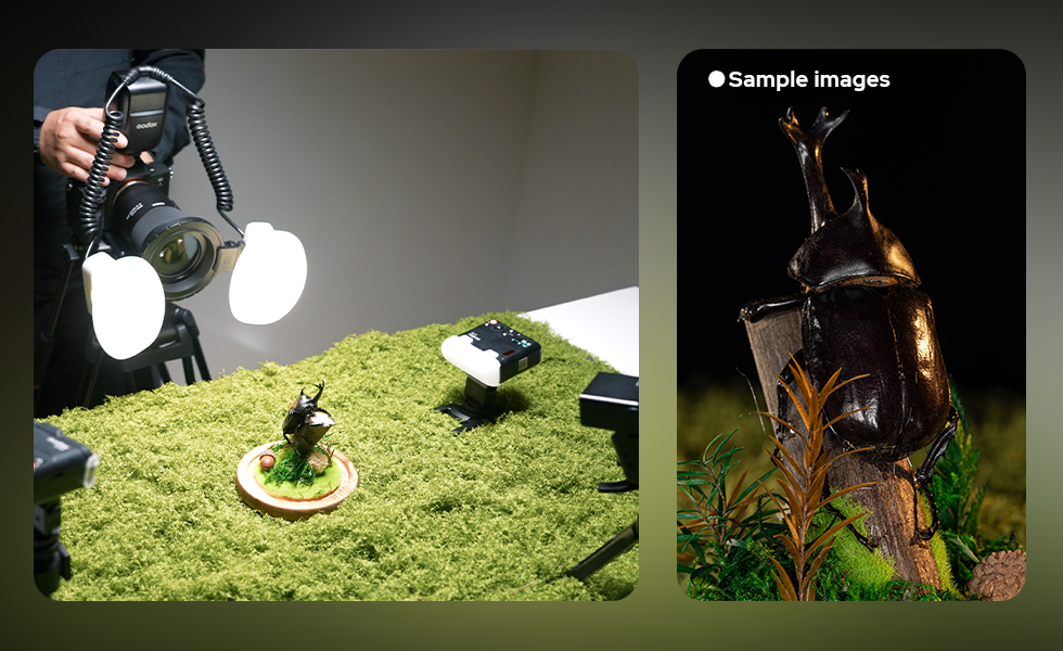 Introducing the MF-T76 Macro Twin Flash, a compact yet powerful lighting solution designed for macro photography, with a fast 1.2-second full-power recycle time that supports a smooth, responsive shooting flow. Engineered for precision and control, the MF-T76 allows photographers to shape light with ease, delivering clean, detailed illumination for subjects such as food, products, insects, plants, and fine jewelry.