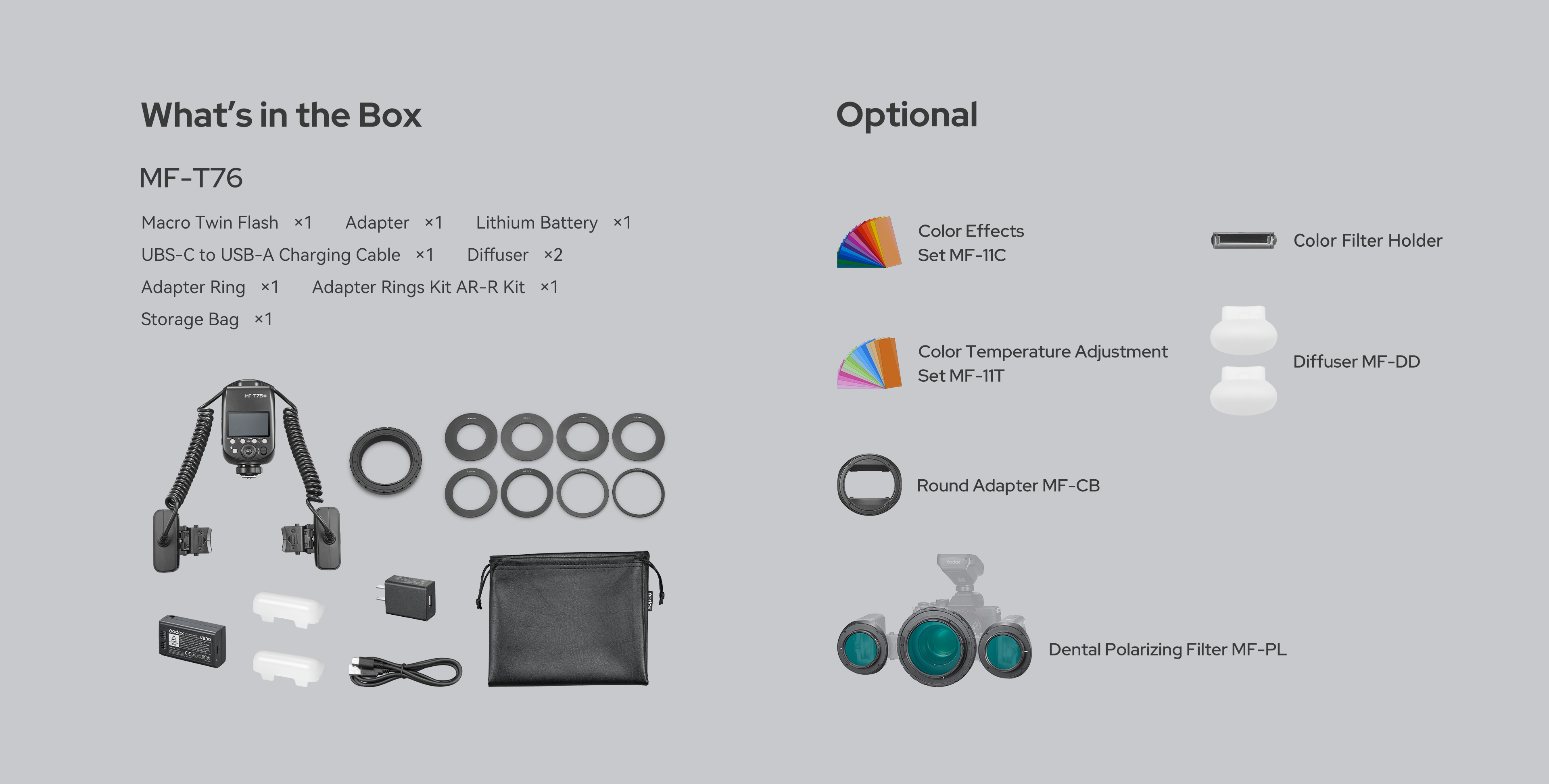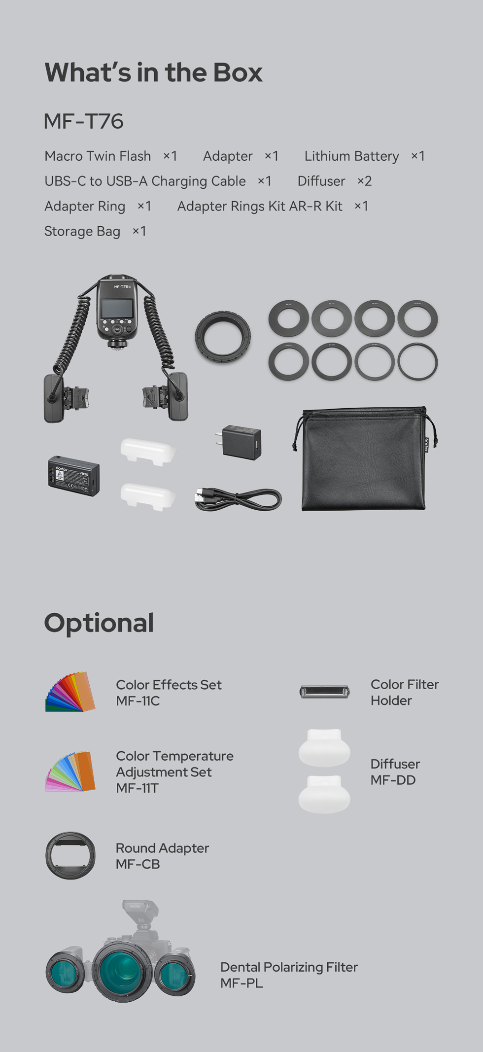 The MF-T76 supports a range of accessories, including diffusers and color filters, giving photographers greater control over light softness and color to suit different subjects and creative styles.