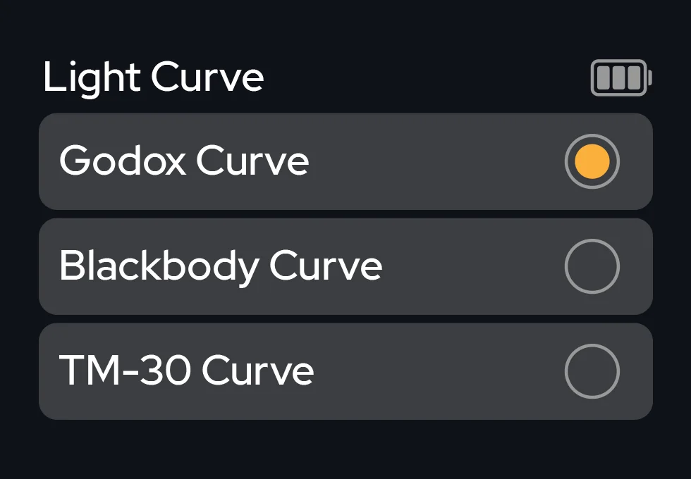 The PaletteLab gives you three calibrated response curves - Godox Curve, Blackbody Curve, and TM-30 Curve. So you can work the way that makes sense for your project.