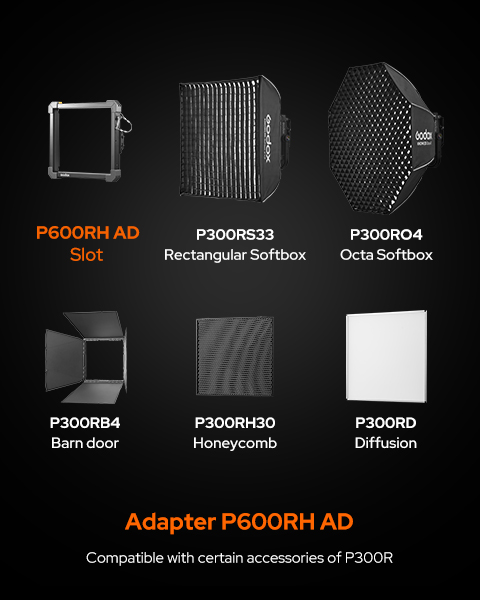 The P600R Hard/P1200R Hard offers a versatile accessory range, enhancing lighting efficiency for diverse needs in complex on-set environments.