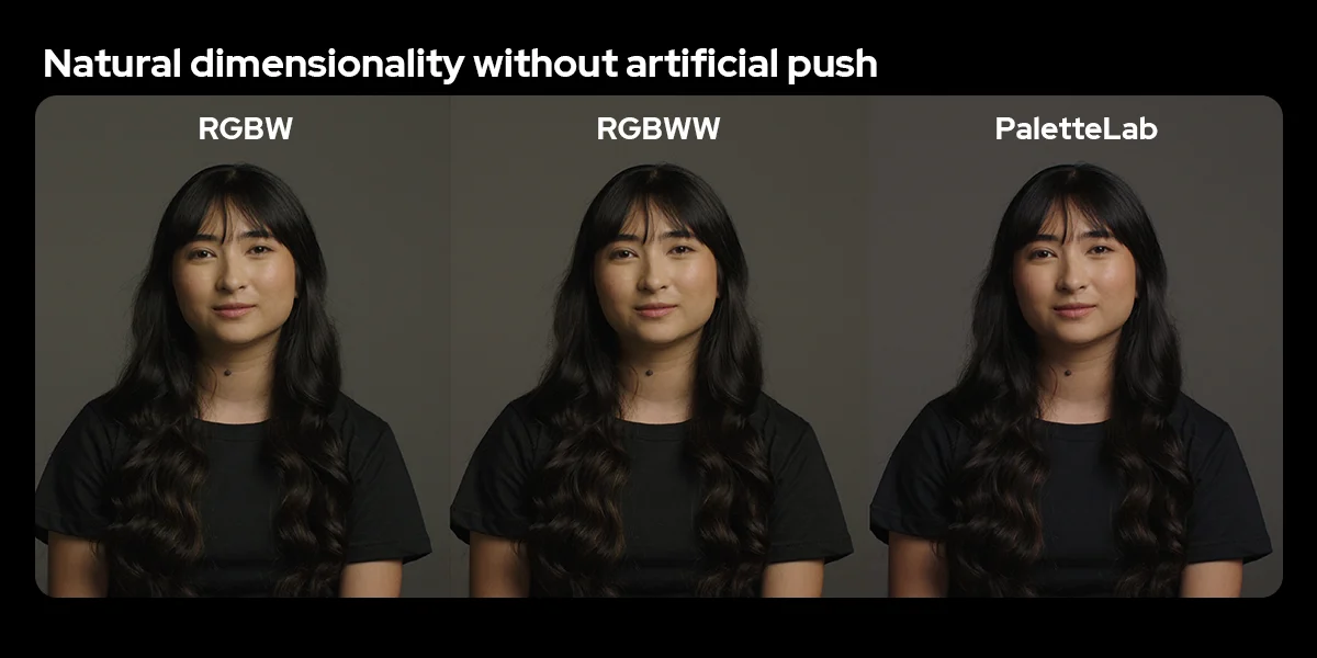 PaletteLab's full-spectrum architecture was optimized specifically for one of the most demanding tests in cinematography: human skin. With a full spectrum and optimized orange red to red to deep red range, it eliminates the muddy "LED gray" that flattens faces. Across every complexion and skin tone, color stays balanced and authentic.
