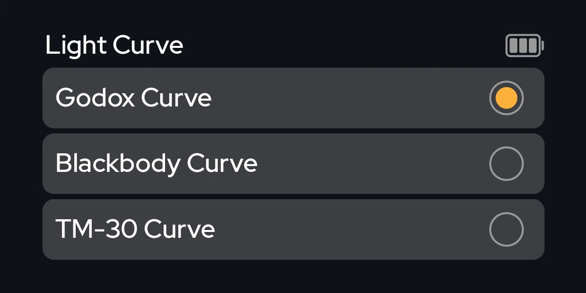 The PaletteLab gives you three calibrated response curves - Godox Curve, Blackbody Curve, and TM-30 Curve. So you can work the way that makes sense for your project.