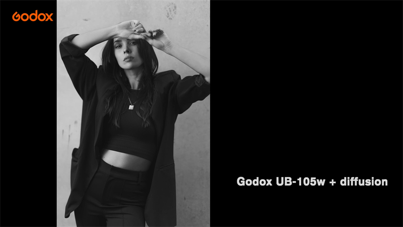 In the next 30 seconds I want to show you three ways of outdoor light setups with Godox 105 umbrella. Because the umbrella is capable of delivering very soft light, the light direction can be more forgivable. You can pretty much light your object from any direction you like. One of the most conventional ways will be used to mimic a window light source front side.